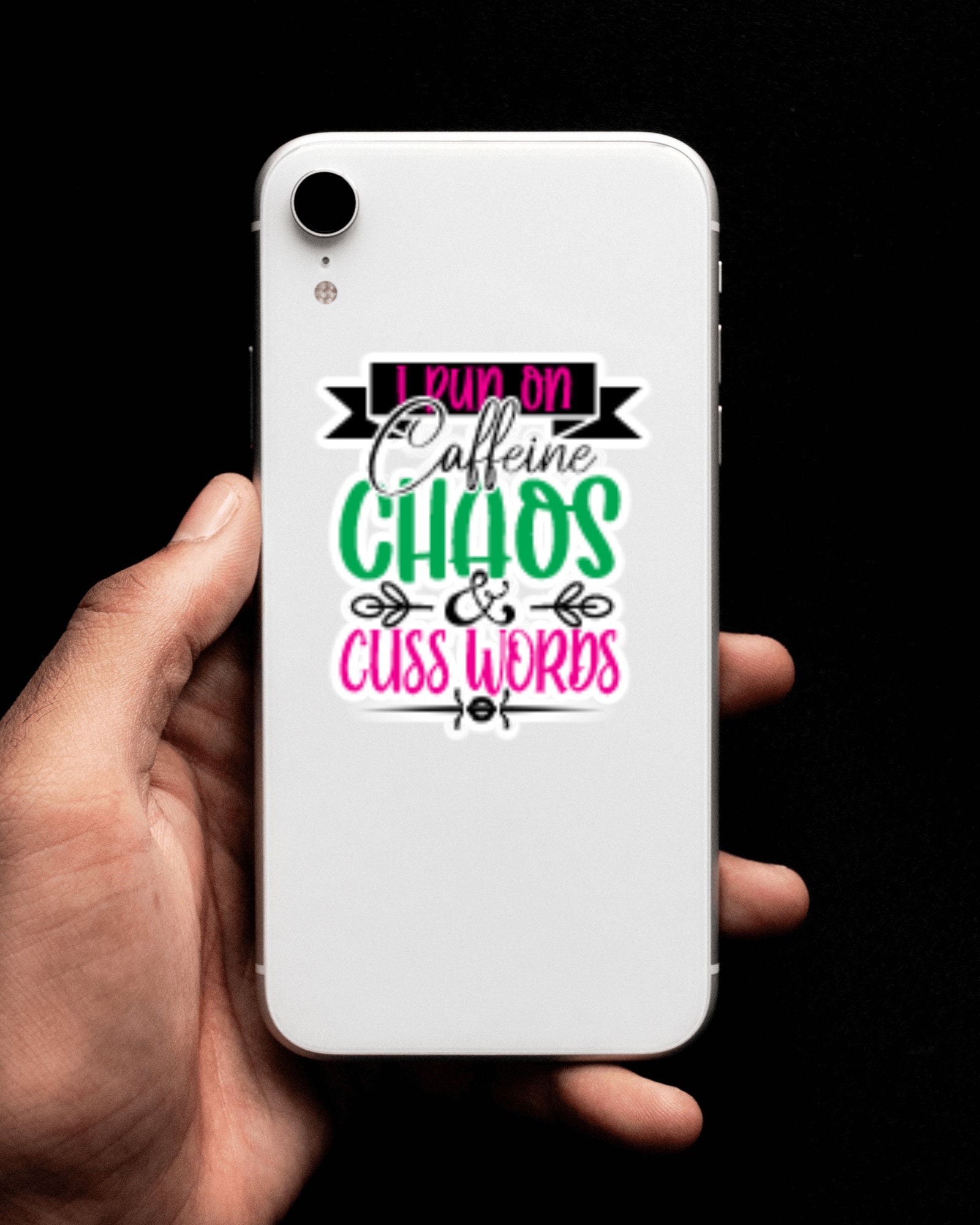 White vinyl sticker sarcasm snarkI run on coffee, chaos, and cuss words