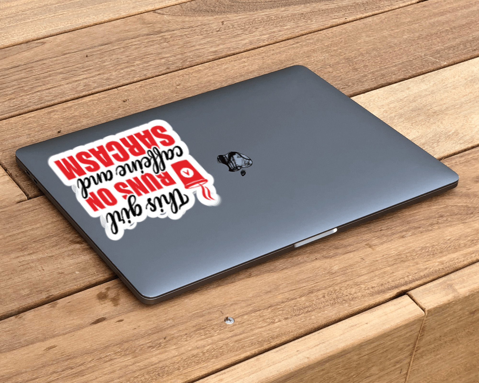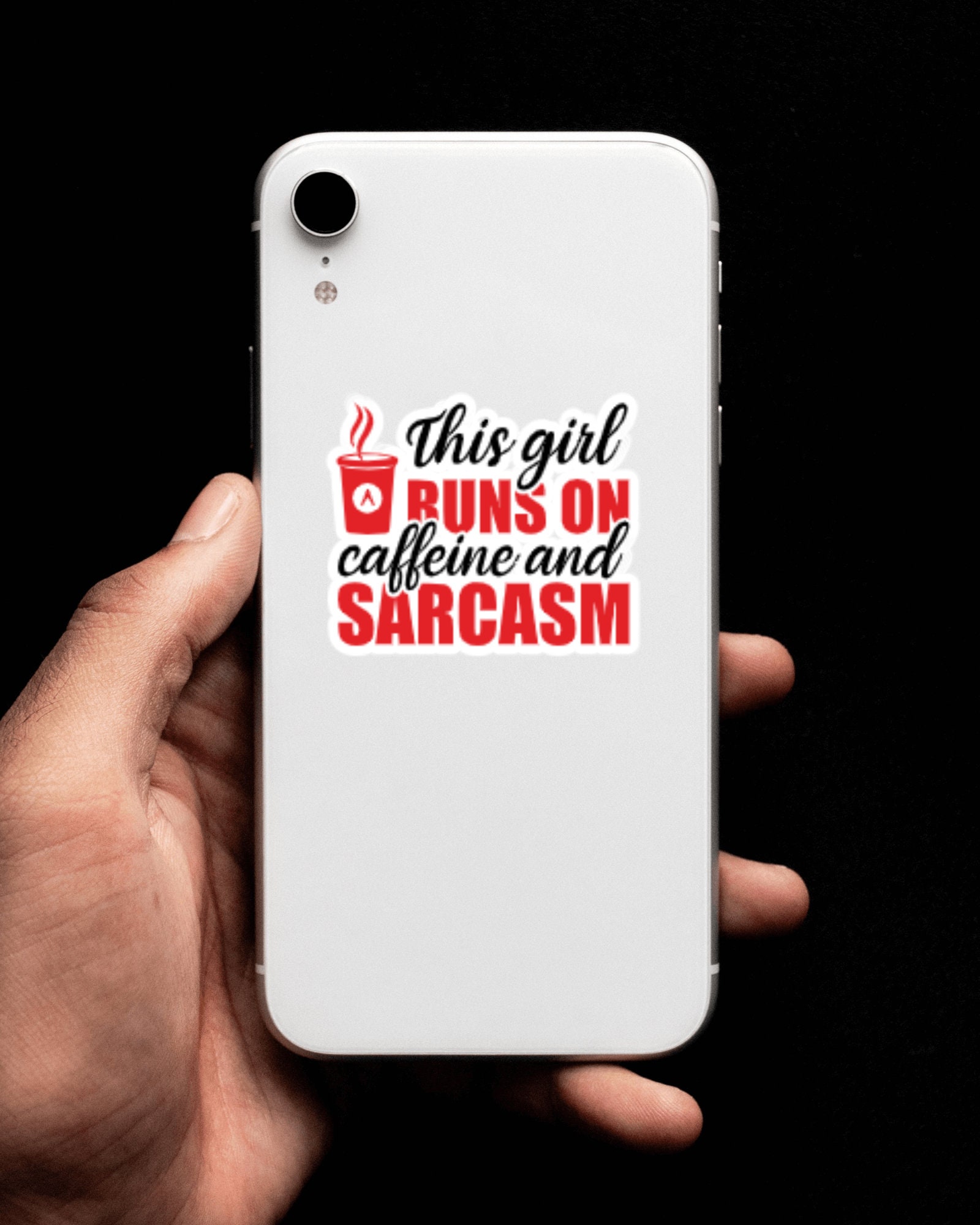 White vinyl sticker sarcasm snarkThis girl runs on caffeine and sarcasm.