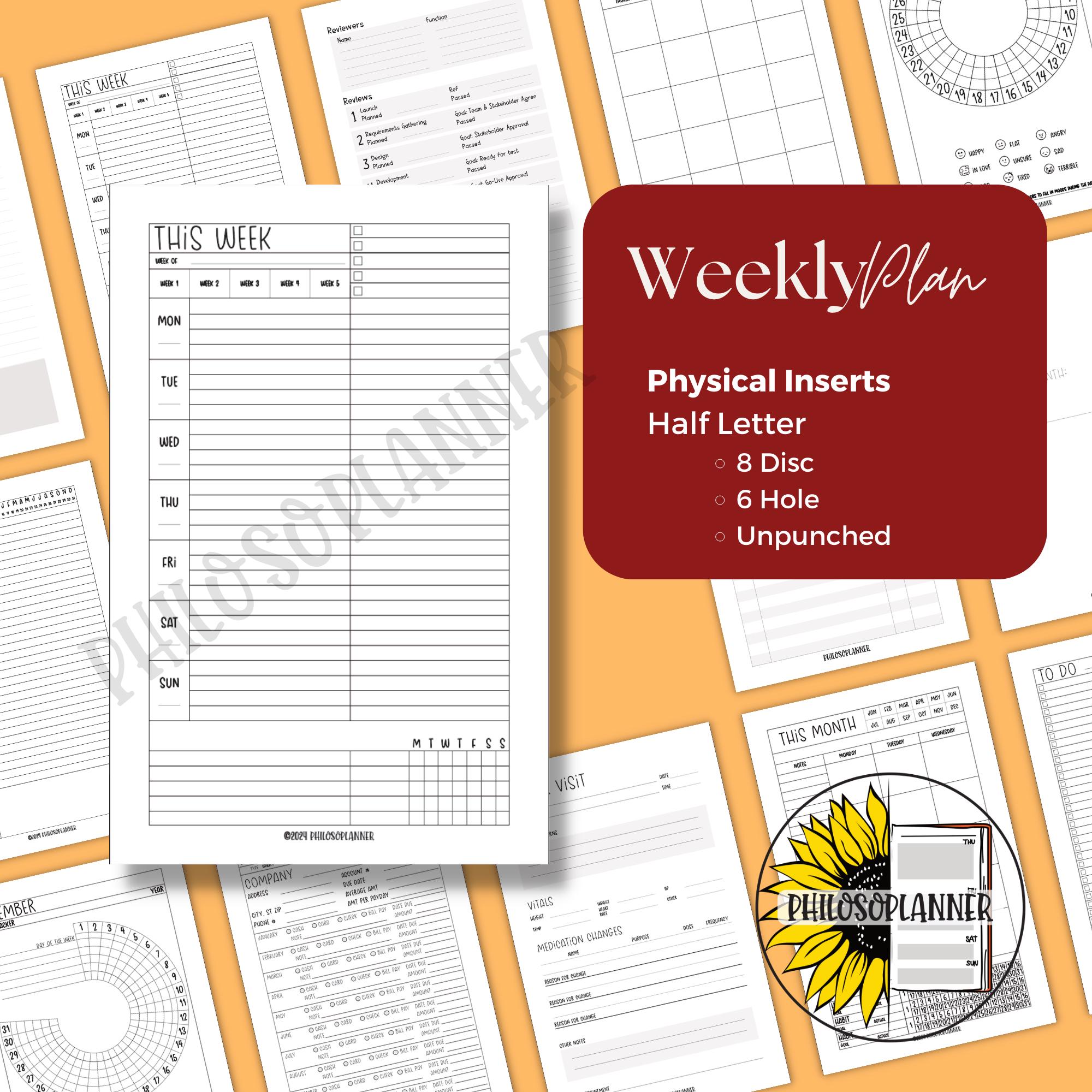These inserts work beautifully in discbound planners, A5 compatible systems that use half letter paper, personal organizational binders, work notebooks, and hybrid planning setups. They are perfect for students, professionals, caregivers, and anyone building a predictable weekly structure. If you like layouts that offer both structure and freedom, this design gives you space to breathe without losing the plot.