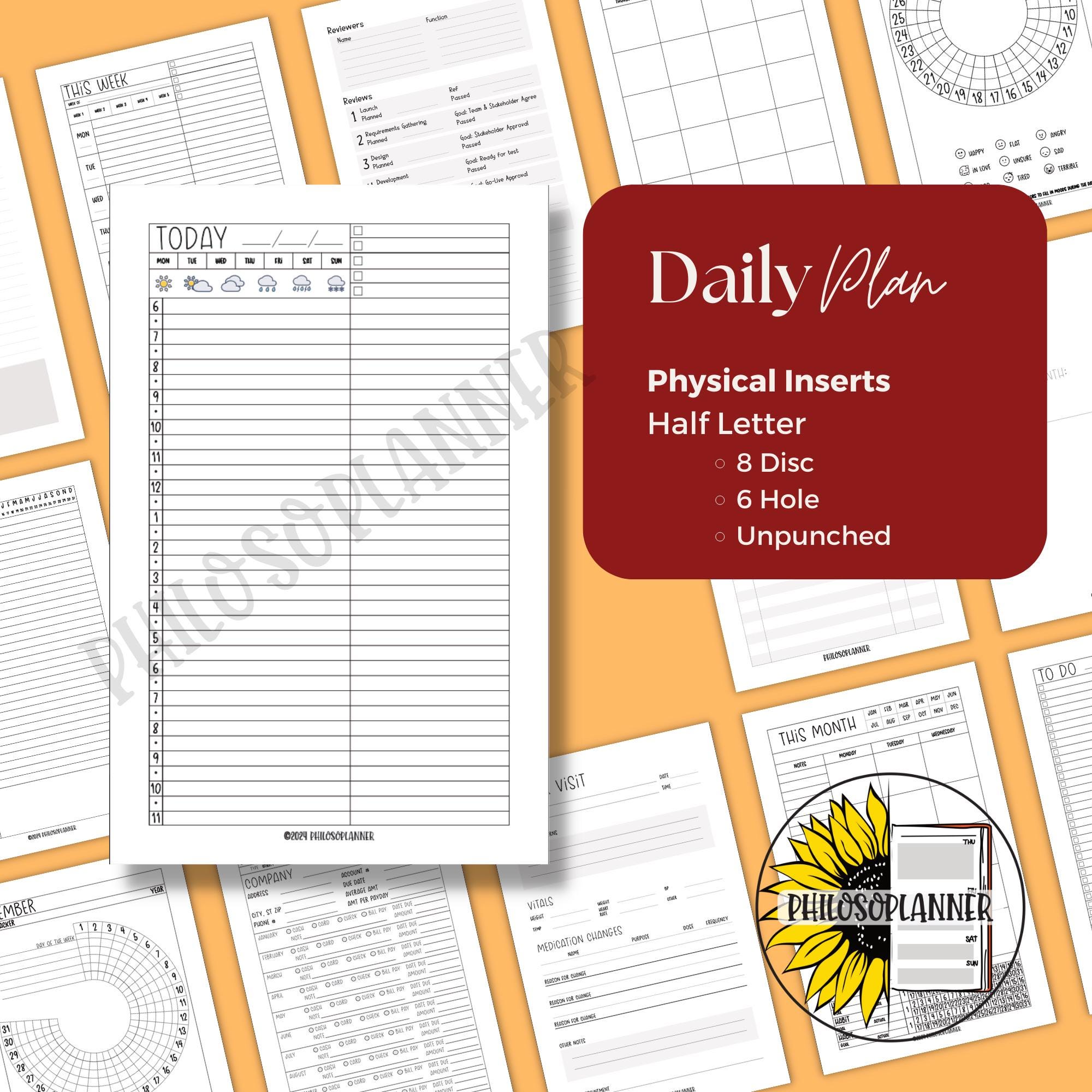 Discover the perfect companion for your daily organization with this minimalist daily planner set, thoughtfully designed to enhance your productivity and streamline your schedule. Featuring an hourly schedule page that spans from six in the morning to eleven at night, these inserts offer a clean and flexible layout ideal for time blocking and structured planning. Crafted for compatibility with most discbound planners, this set blends simplicity with functionality to support your unique daily agenda insert needs.